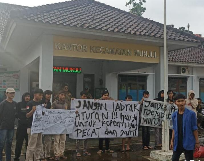 “Dengan adanya kekosongan jabatan perangkat Desa Munjul kecamatan munjul bahwa pengisian kekosongan perangkat desa itu harus dengan rekomendasi Camat. Maka apabila terjadi proses pengisian perangkat desa baik melalui mutasi, penjaringan, dan penyaringan yang bertentangan dengan peraturan yang berlaku maka hal itu dinilai cacat secara administrasi dan aturan hukum,” ungkap Korlap Aksi, Muhamad Bustomi.