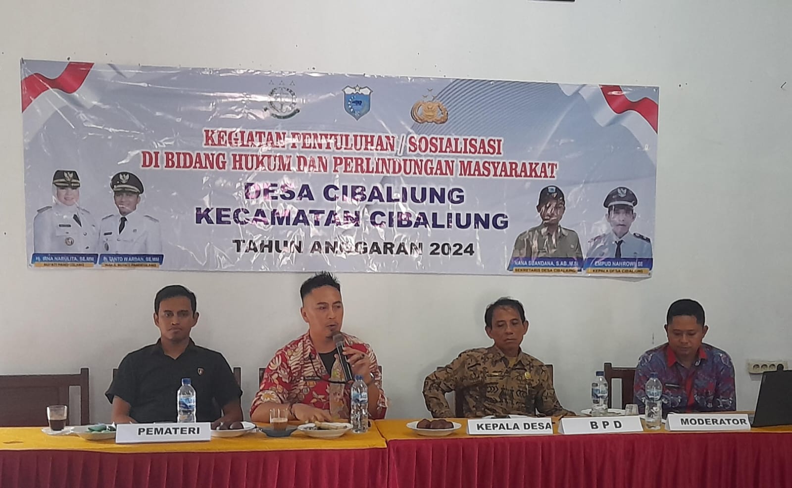 Pandeglang, JMM News – Dinas Pemberdayaan Masyarakat dan Pemerintahan Desa (DPMPD) dan Kepolisian Resort (Polres) Kabupaten Pandeglang bekerja sama dalam memlakukan kegiatan penyuluhan dan sosialisasi Bidang hukum di Kecamatan Cibaliung; Kamis (30/5/24). dengan pemateri atau nara sumber (1) Wildan, Kabid Perlindungan Hukum dan Masyarakat DPMPD Kabupaten Pandeglang dan Andi Bara Setiawan, S.H. dari unit Tindak Pidana Khusus Polres pandeglang. Tema peningkatan kapasitas Aparatur Pemerintah Desa dan Pengurus Kelembagaan Desa