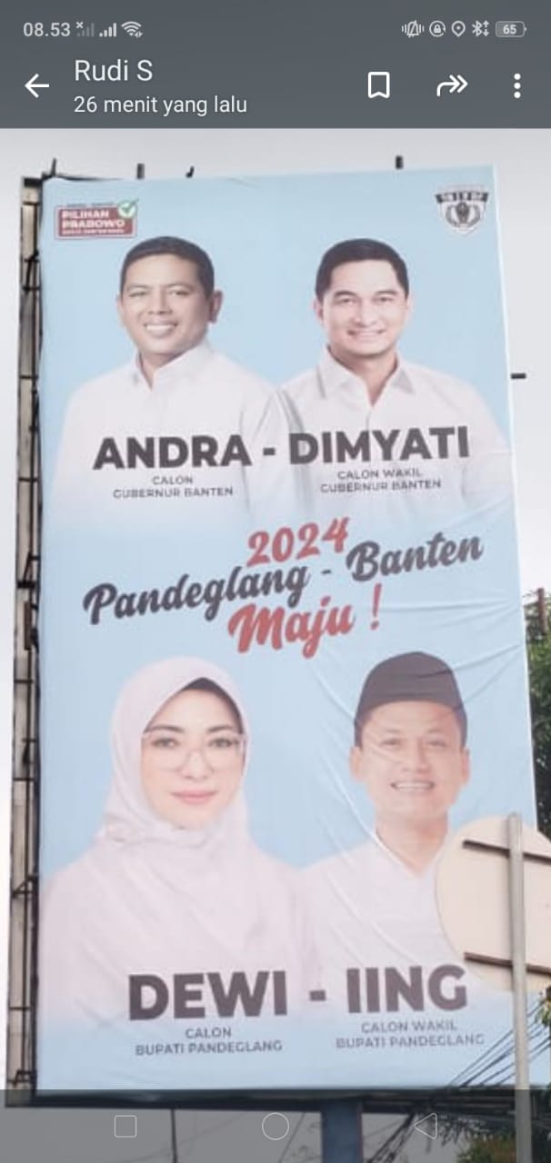 Bahwa fakta yang ditemukan Penggugat II Teja Negara, pada tanggal 21 Juli 2024 terpasang foto pada billboard Pasangan Calon Bupati Kabupaten Pandeglang atas nama Raden Dewi Setiani Tergugat II dan Calon Wakil Bupati Kabupaten Pandeglang atas nama ling Andri Supriadi Tergugat III dengan kata-kata “2024 Pandeglang-Banten Maju!” (Diatasnya Ada Foto Andra Calon Gubernur Banten-Dimyati Calon Wakil Gubernur Banten) Yang Berlokasi di Jalan Jenderal Ahmad Yani Curug Sawer (Depan Pertigaan Jalan Raya ke Lapangan Sukarela) RT 001 RW 009 Kelurahan Pandeglang Kecamatan Pandeglang Kabupaten Pandeglang Provinsi Banten.