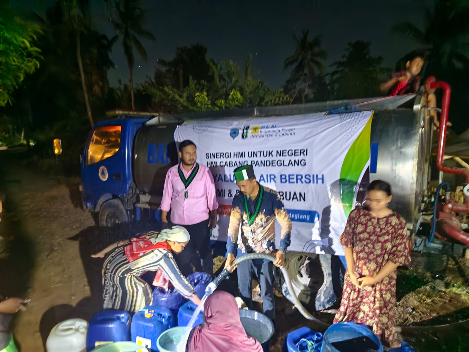 Menurut Ketua HMI Cabang Pandeglang, Entis Sumantri alias Tayo, bahwa sejak musibah kekeringan menerjang beberapa wilayah kecamatan terus melakukan bantuan sosial (Bansos) dengan mendistribusikan air bersih yang sangat dibutuhkan warga lokasi kekeringan tersebut.