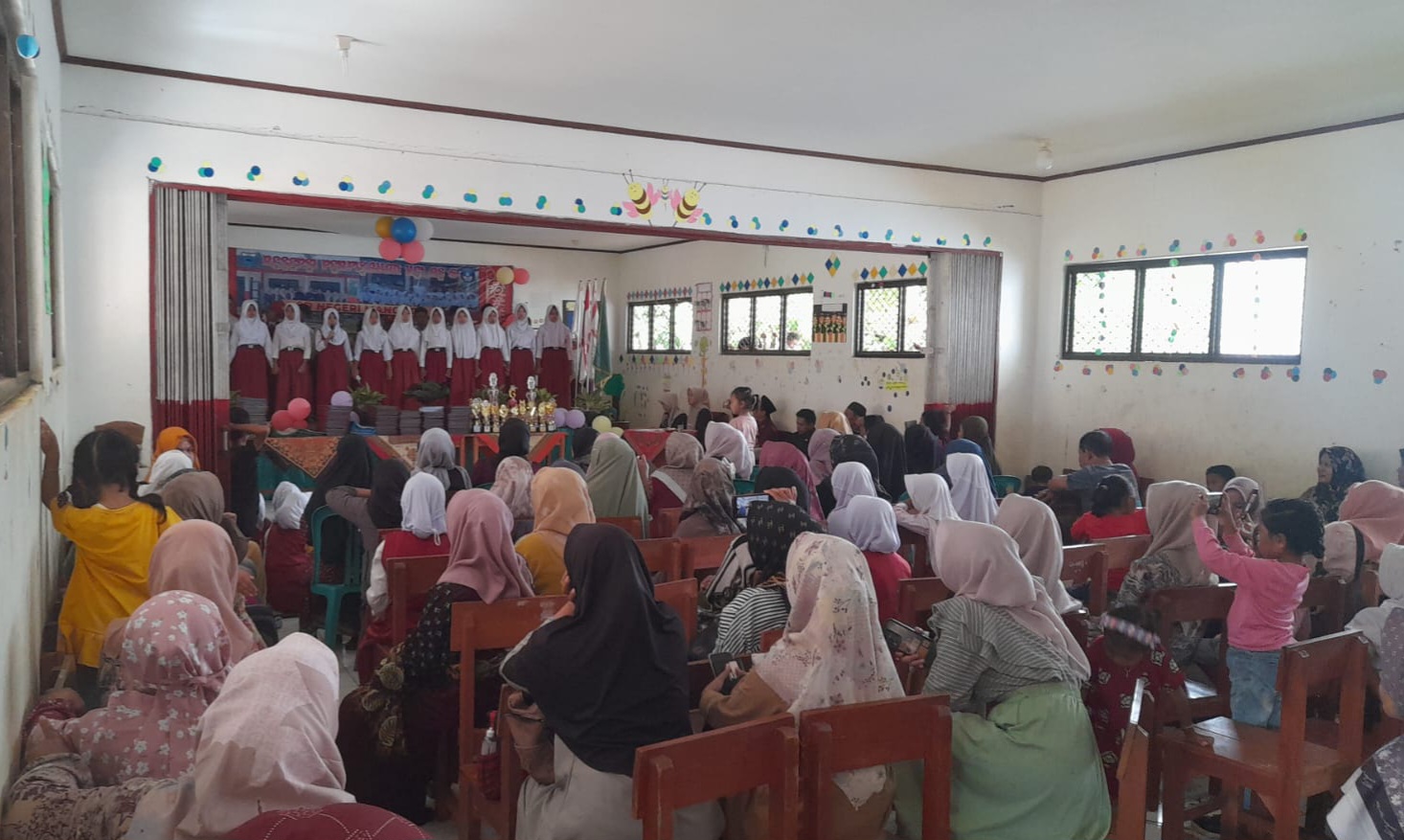 Pada sisi lain, ada juga tampak pemandangan yang cukup ironis. Para pengunjung tampak seperti terlantar, tak ada tempat duduk. Karena pihak sekolah memang tidak menyiapkan fasilitas sebagai layaknya persiapan kenaikan kelas, seperti membuat tenda dan menyiapkan kursi-kursi dalam kapasitas besar yang diperuntukan acara perayaan kenaikan kelas dan pelepasan siswa siswi kelas akhir.