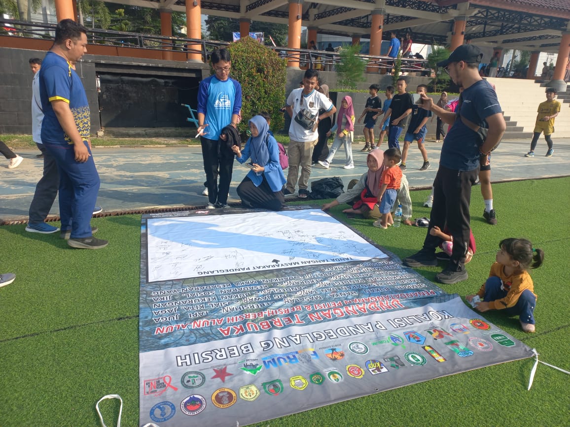Aksi damai ini diawali sejak pagi hari sambil jalan santai turun langsung menggalang petisi masyarakat dan membersihkan kawasan Alun-Alun sebagai bentuk kampanye simbolik untuk menolak kiriman sampah dan mendorong tanggung jawab bersama dalam menjaga lingkungan hidup.